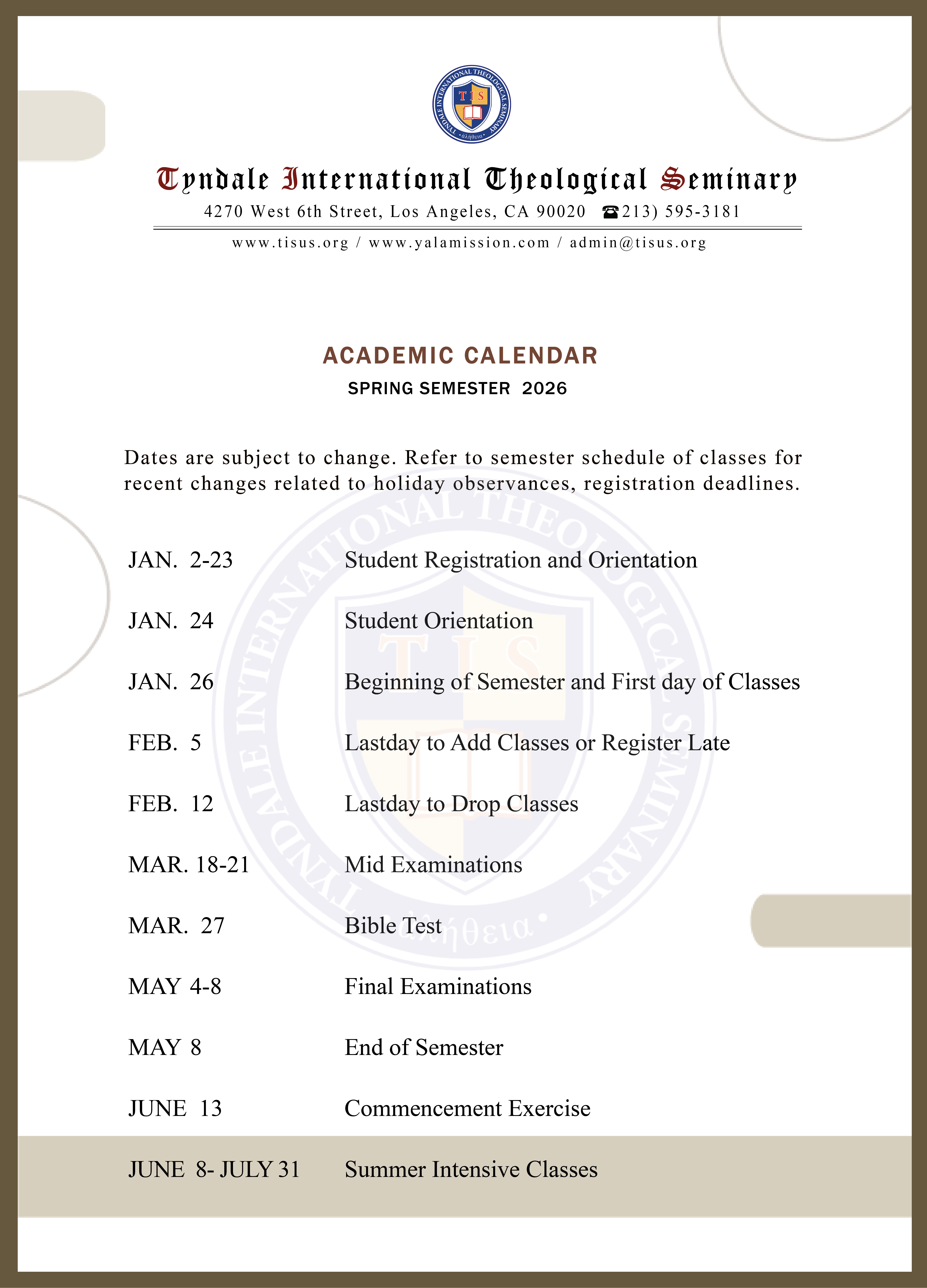 Academic Calendar